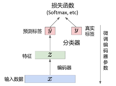 那么这个编码器有什么用呢?在少样本的情况下,我们可以用已经训练好的自编码器去掉解码器部分,将解码器作为有监督学习的初始特征提取模型,在提取出来的主要特征后面借一个全连接层来进行分类等任务,将最后的输入y^\hat{y}与真实值y进行比较,如果还有差距,我们可以对编码器的参数进行微调。但目前效果仍然还是不太理想。