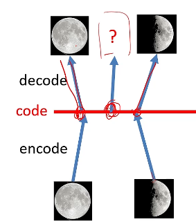 首先,我们来说明我们为什么需要VAE,我们首先来看下面这张图片,图中的,我们用半月和满月来训练我们的自编码器,但是我们希望给定半月和满月对于的编码的中间值来给到解码器,给我们输入一个3/4的月亮,但是对于自编码器来说,由于其在训练过程中并没有3/4的月亮,所以我们想要让其生成3/4的月亮也是强人所难的,这是就需要用到了我们的变自分编码器。
