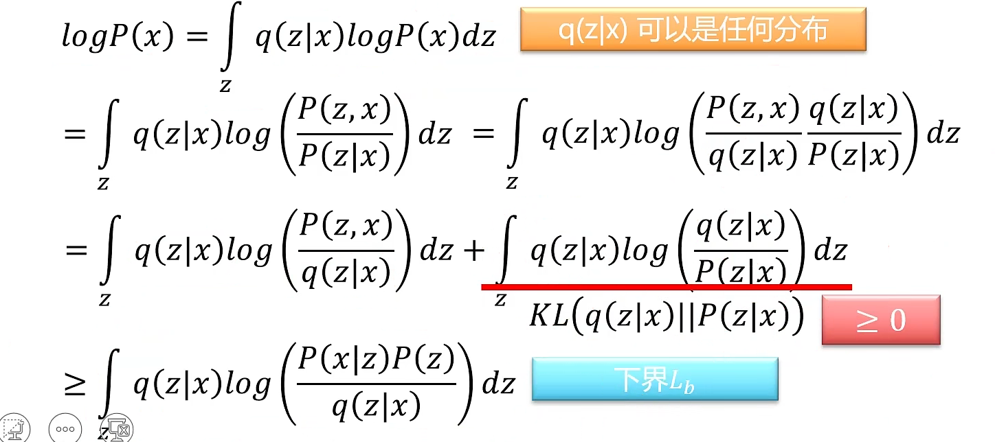 logP(x)=zq(zx)logP(x)dzlogP(x)=\int_{z}q({z|x})logP(x)dz,因为zq(zx)dz=1\int_{z}q(z|x)dz=1